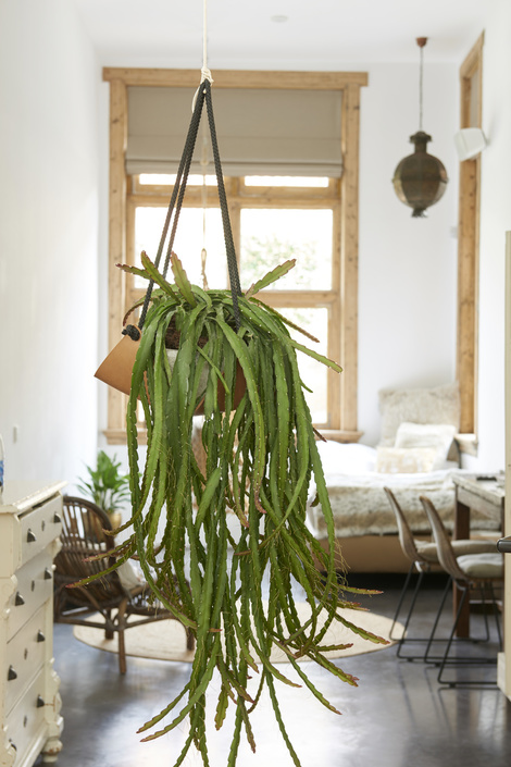 Heel bijzonder: Rhipsalis is eigenlijk een cactus, maar dan zonder prikkelende trekjes. Deze woonplant is een snelle groeier die in lange, warrige ranken naar beneden hangt of bossig naar boven groeit. Diepgroen van boven, wat ijler aan de uiteinden, prachtig voor spannende doorkijkjes en tafelveldjes. De plant wordt ook wel rotskoraal genoemd en is zo goed als onderhoudsvrij. Rhipsalis redt zich aardig met vergeetachtige watergevers, valt niet uit en is onder ideale omstandigheden een rijk vertakte schoonheid.